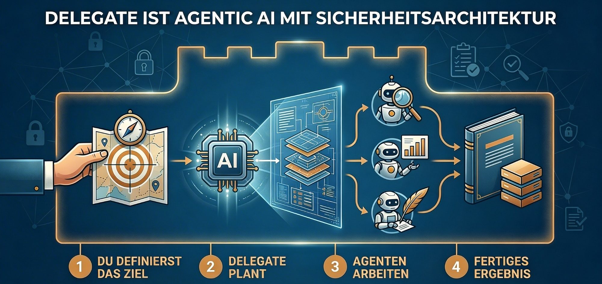 Delegate ist kein Chatbot. Es ist ein KI-Team, das eigenständig arbeitet